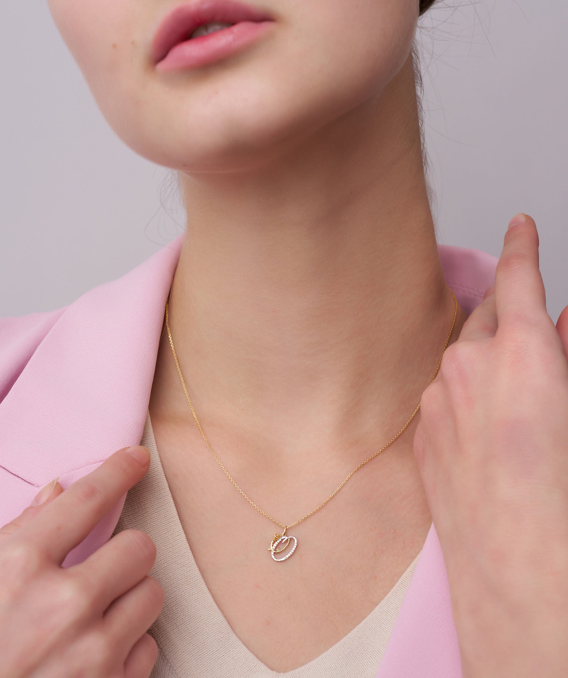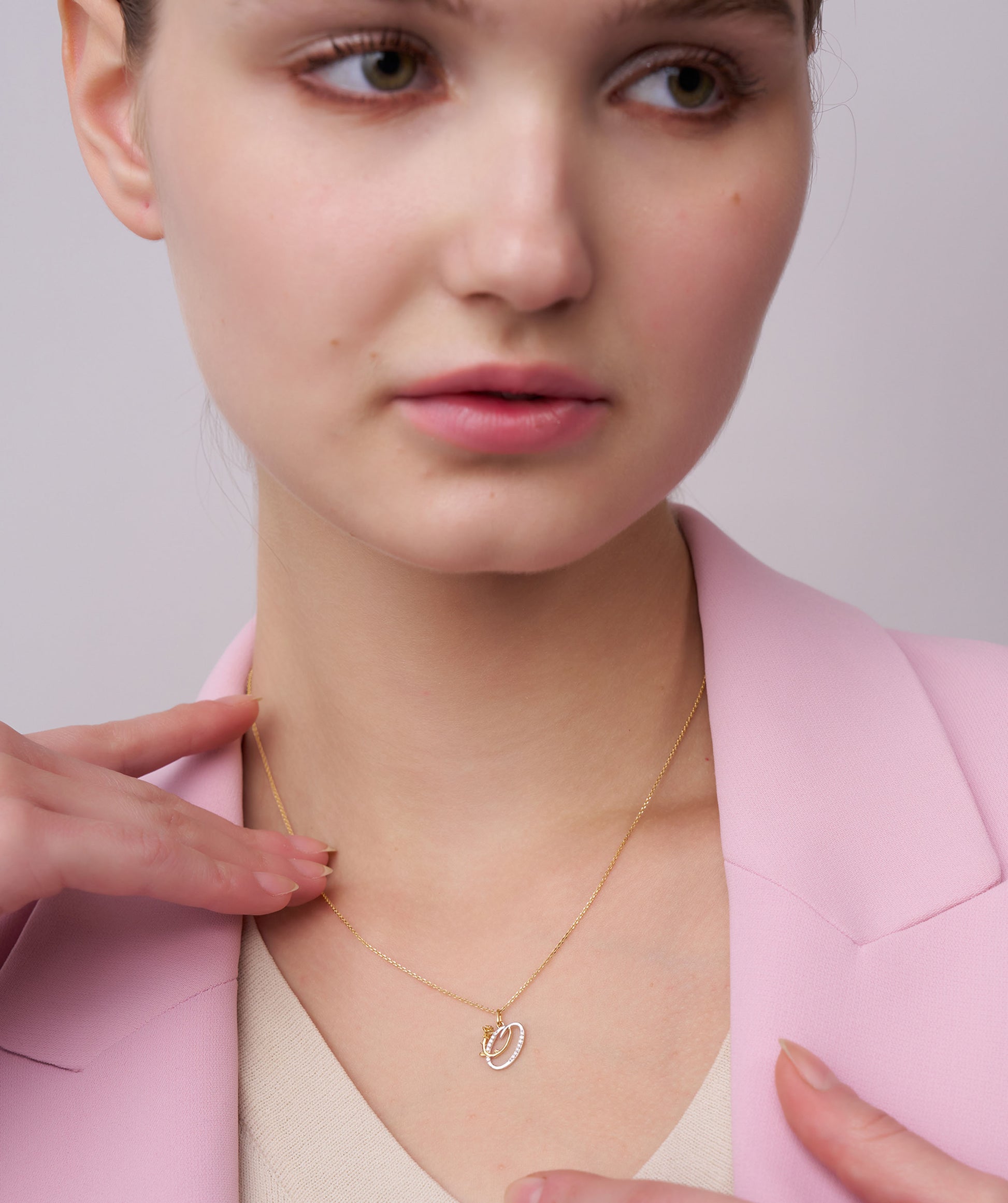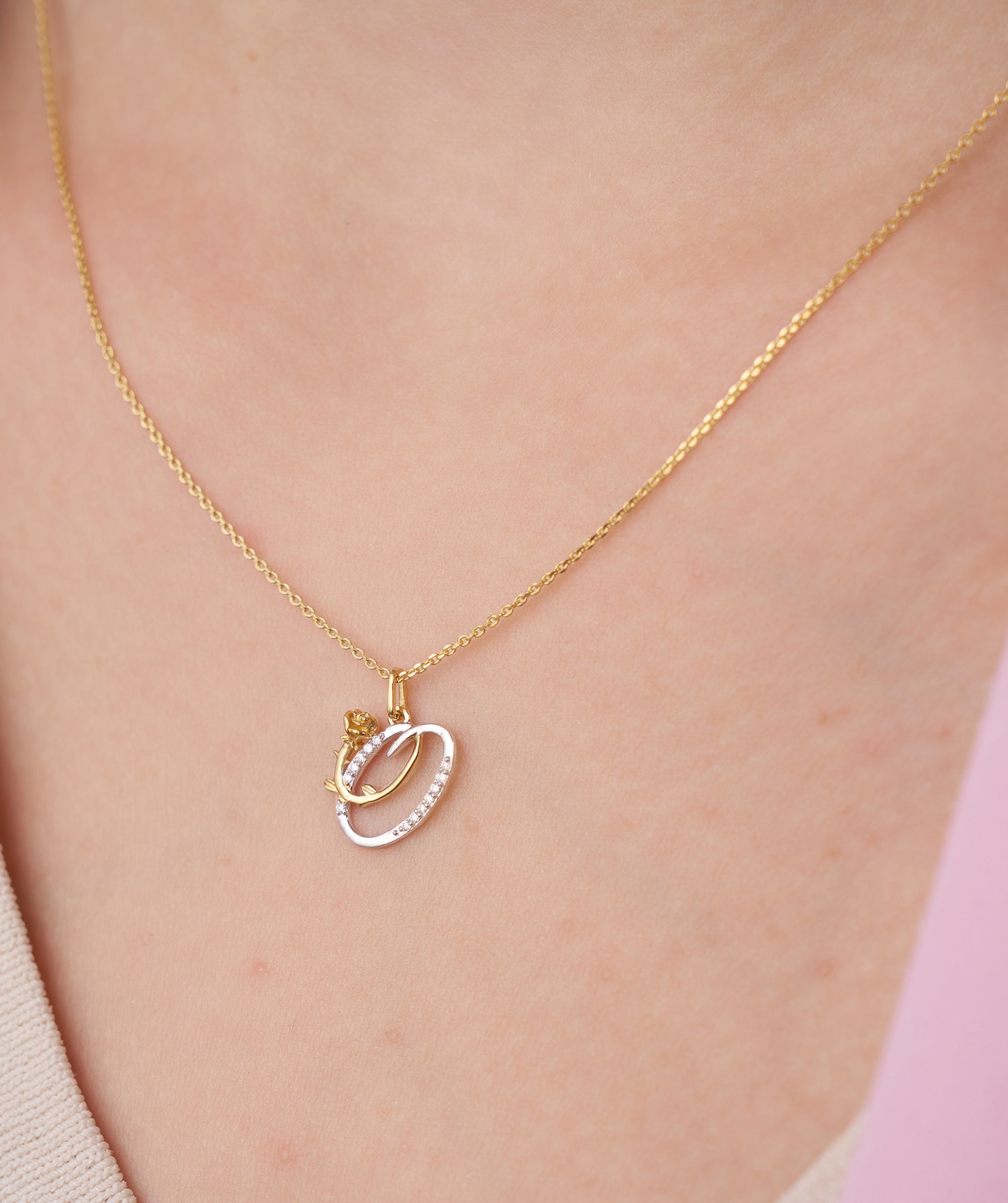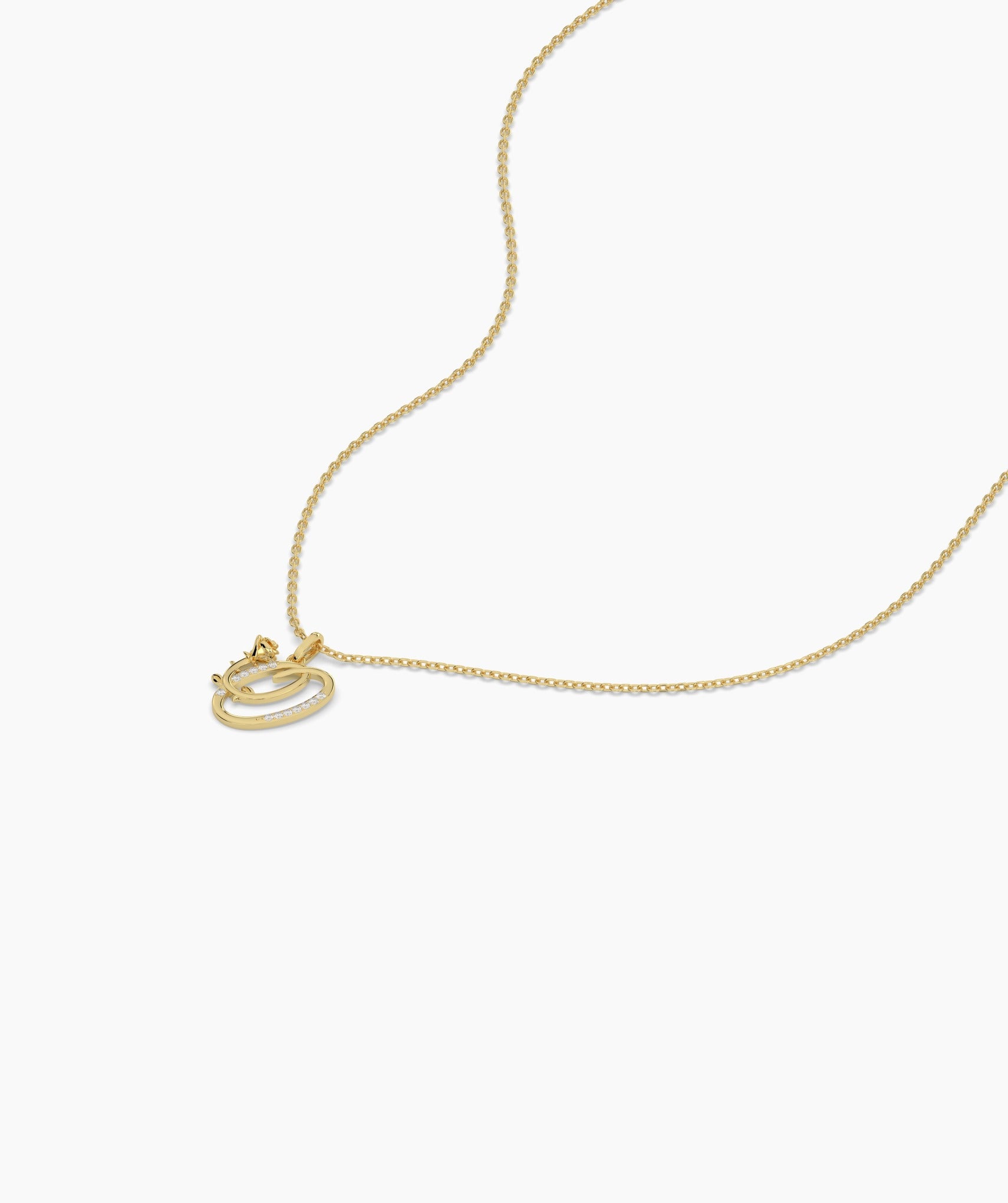 A beautifully crafted 14K gold necklace featuring an intertwined ring and rose, symbolizing eternal love and beauty.
