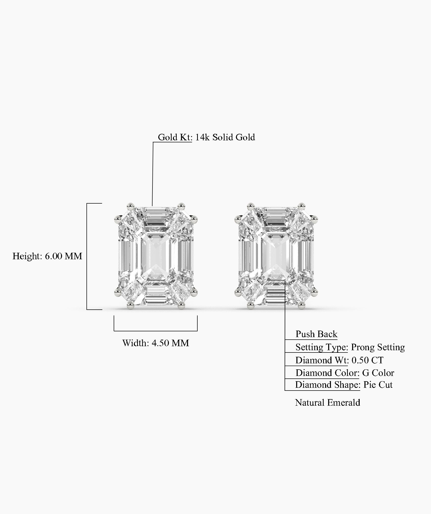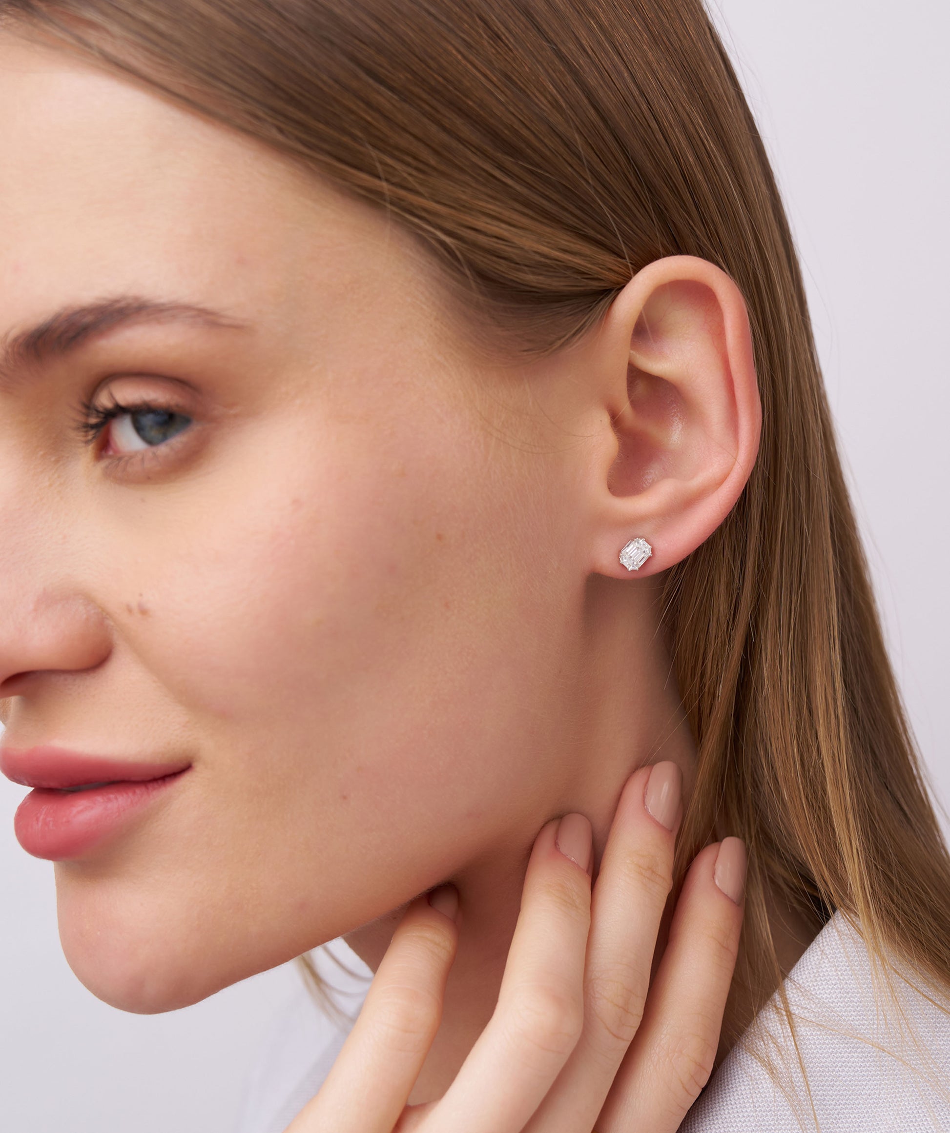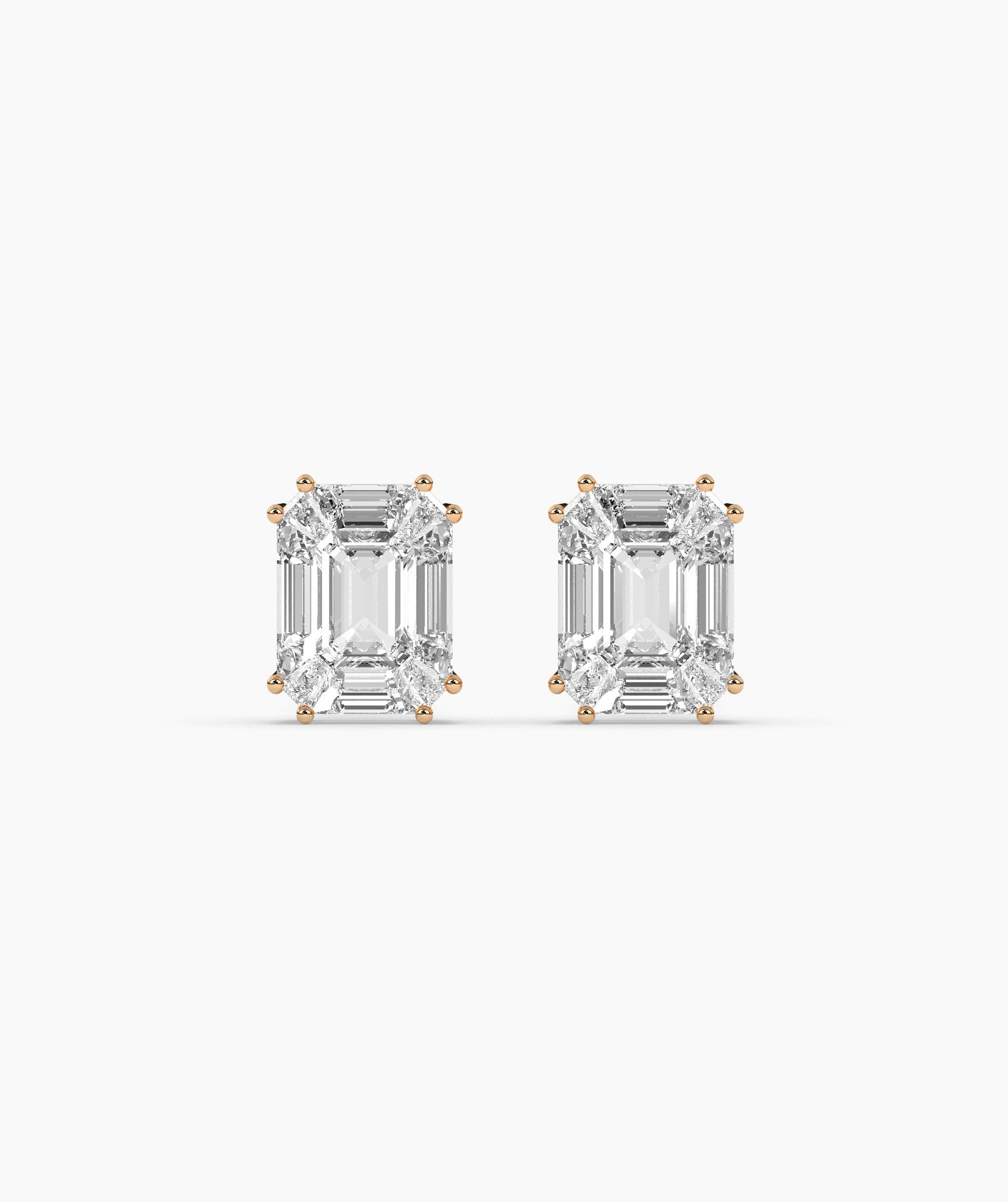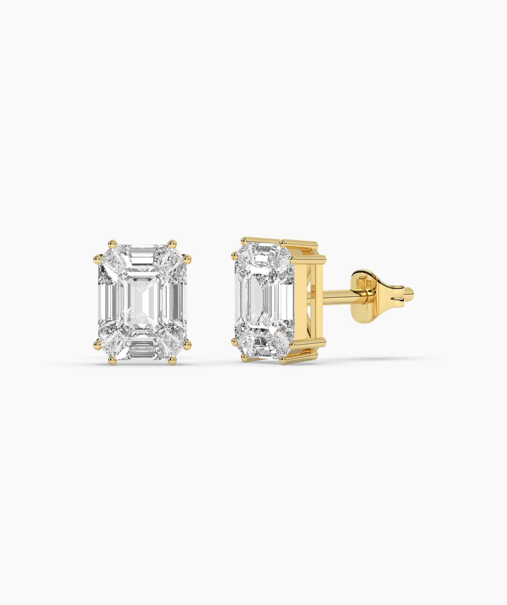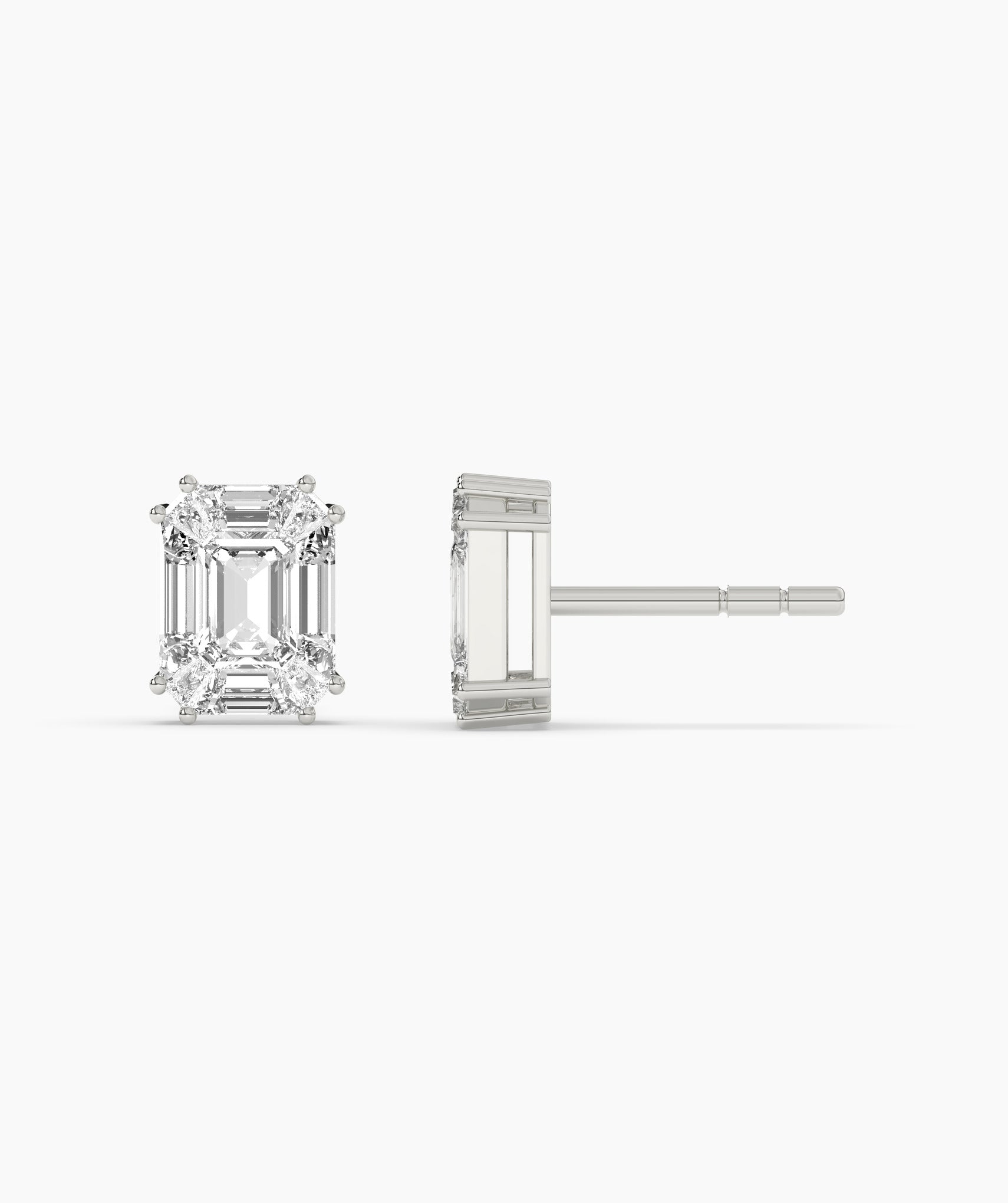Showcase sophisticated geometry in these diamond stud earrings, where each emerald-cut stone captures light from every angle.