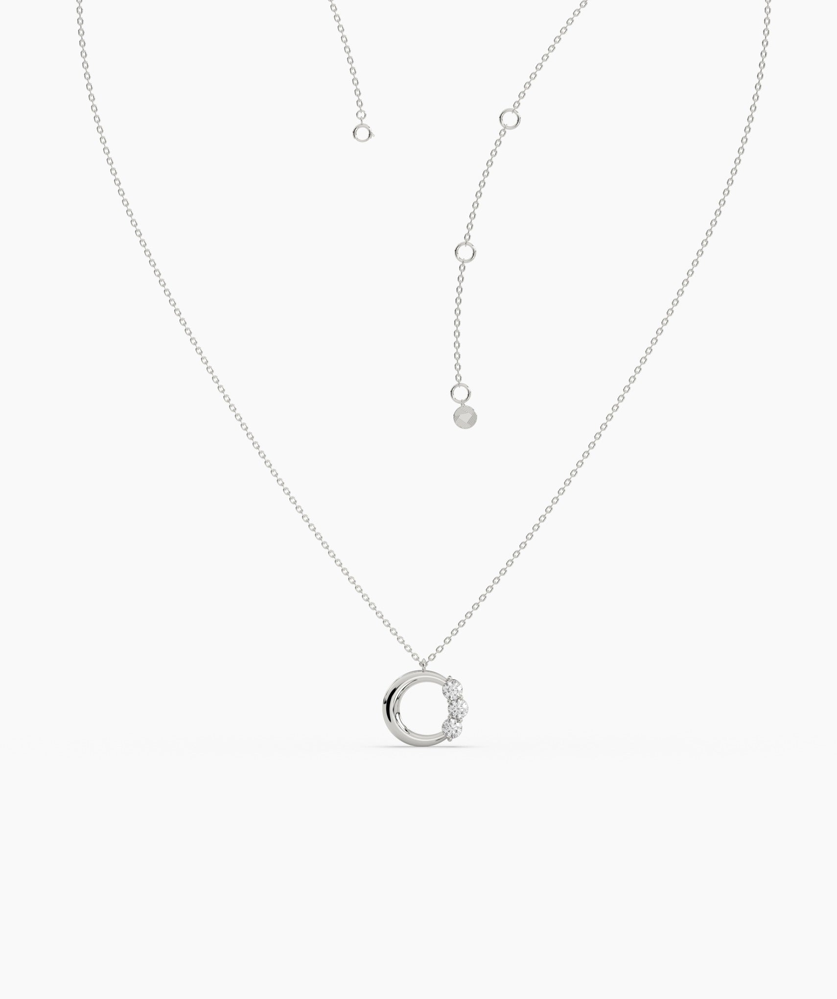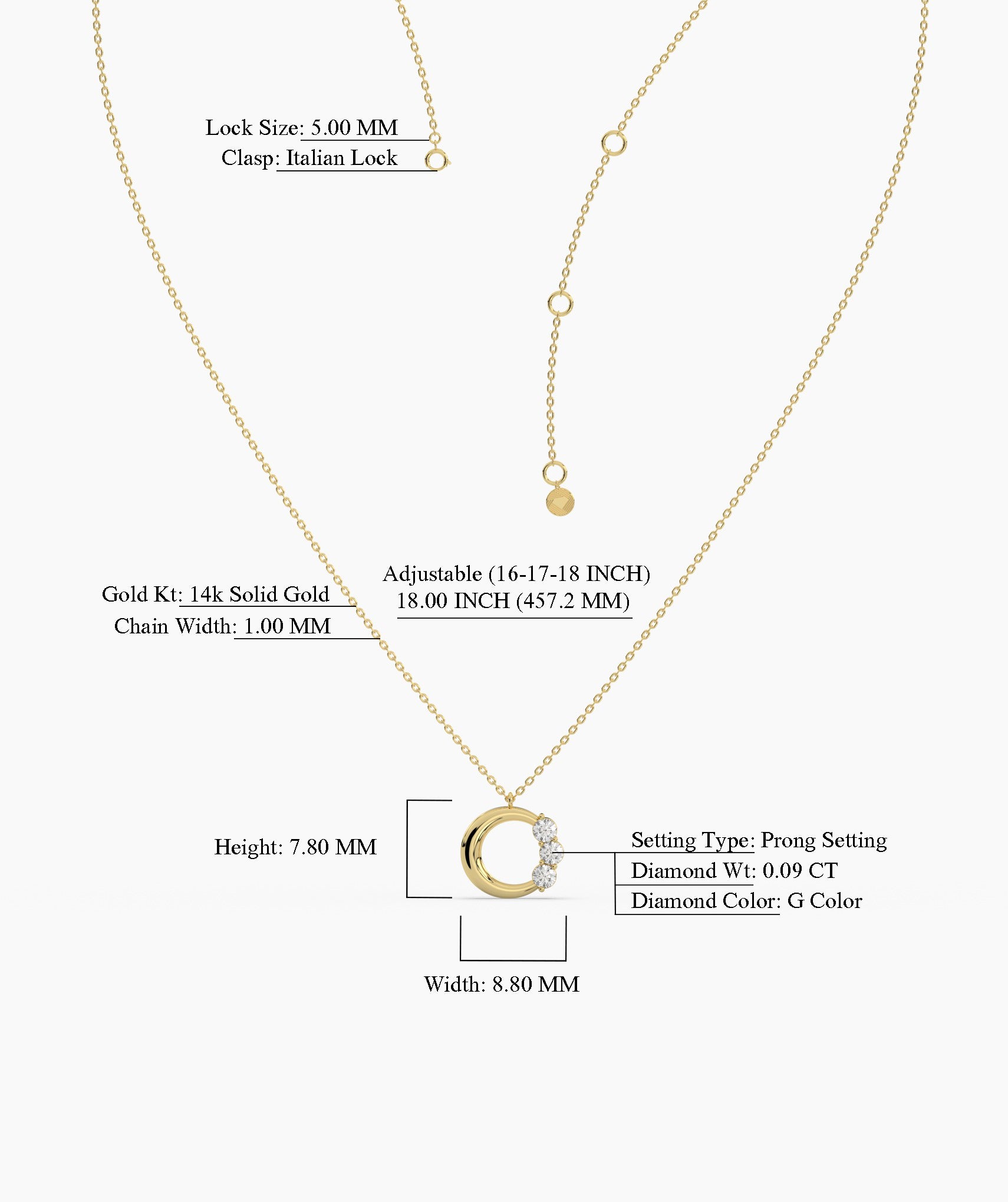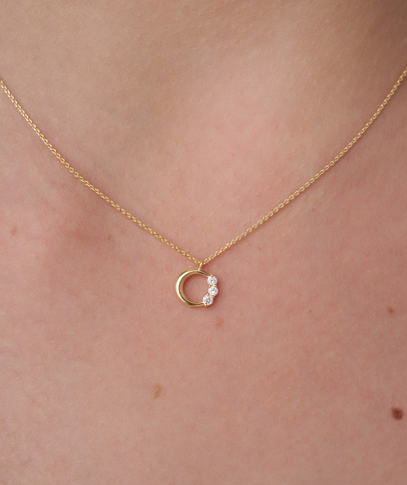 Elevate any ensemble with this partial-circle pendant, crafted in solid gold and adorned with a trio of dazzling diamonds.