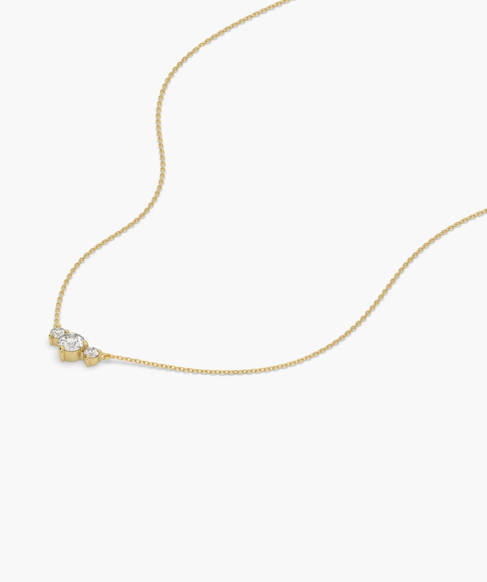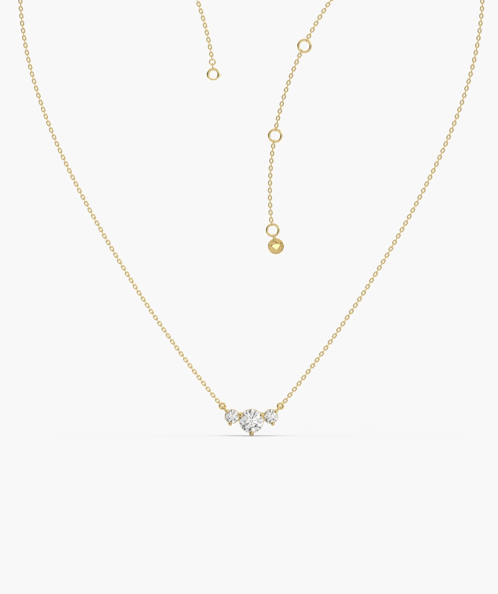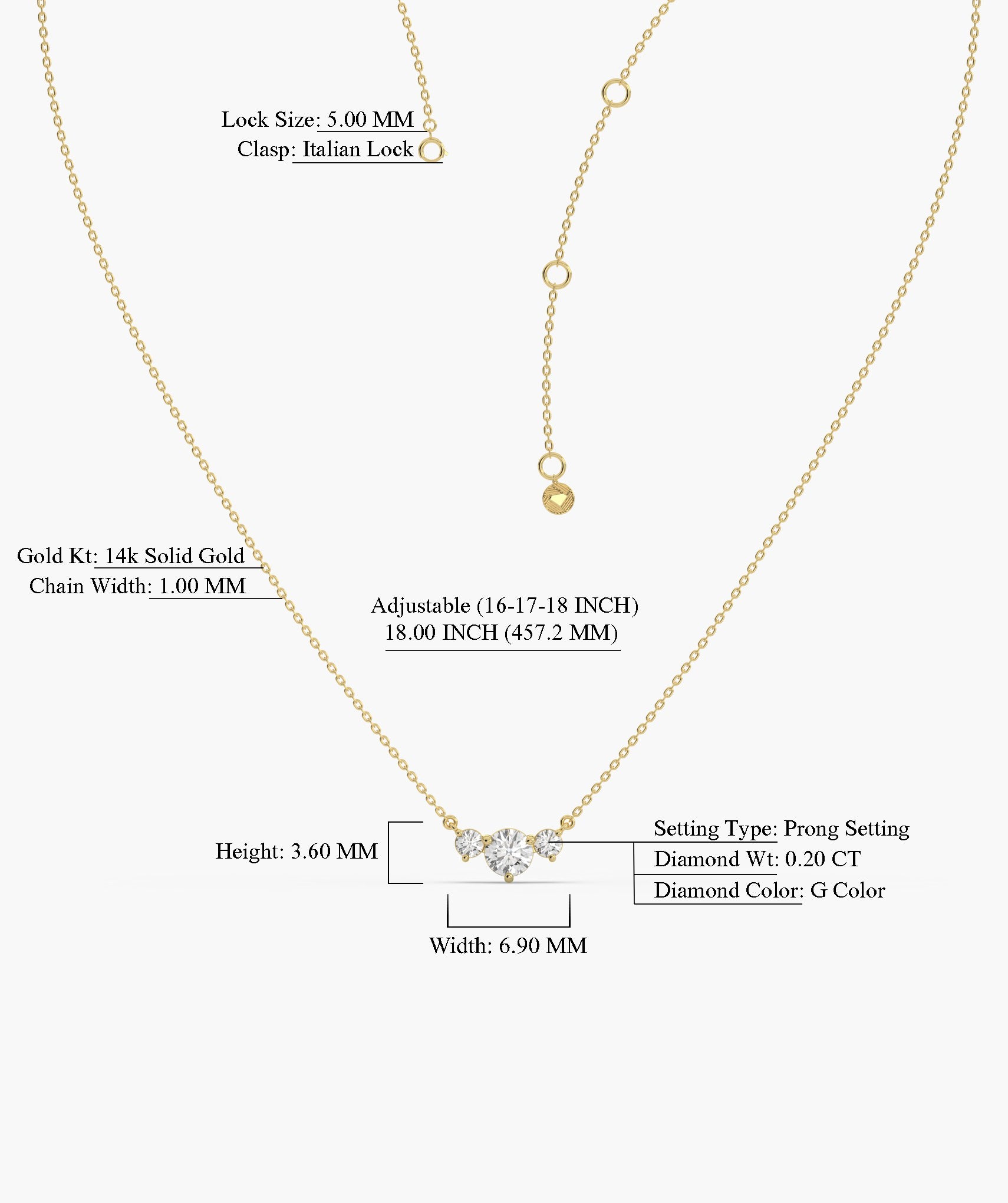 Refined 14K gold necklace with three prong-set diamonds, offering timeless elegance and a touch of sparkle for any occasion.