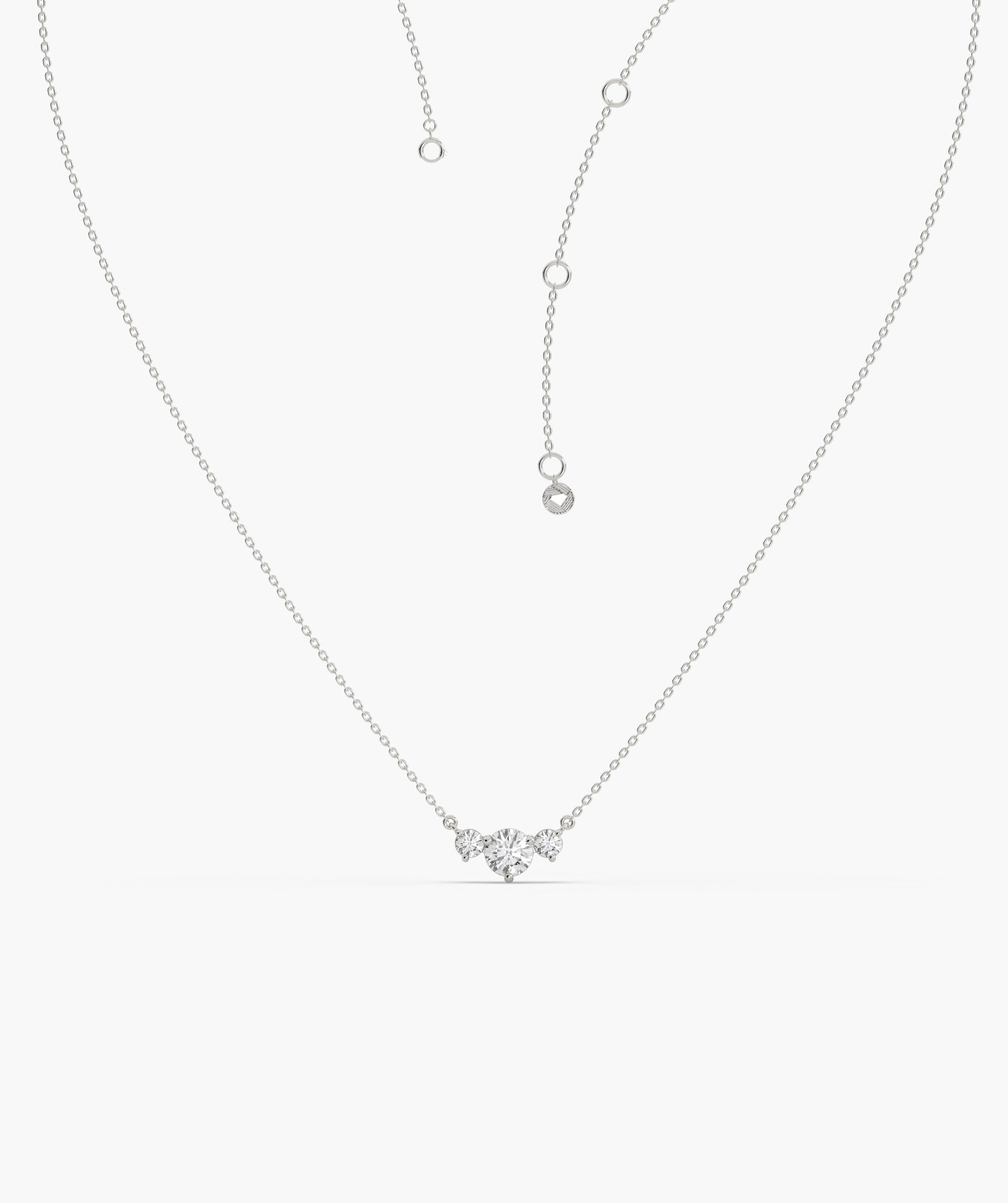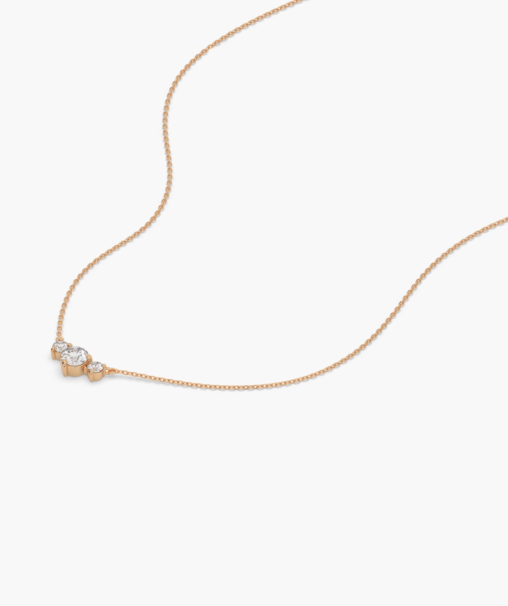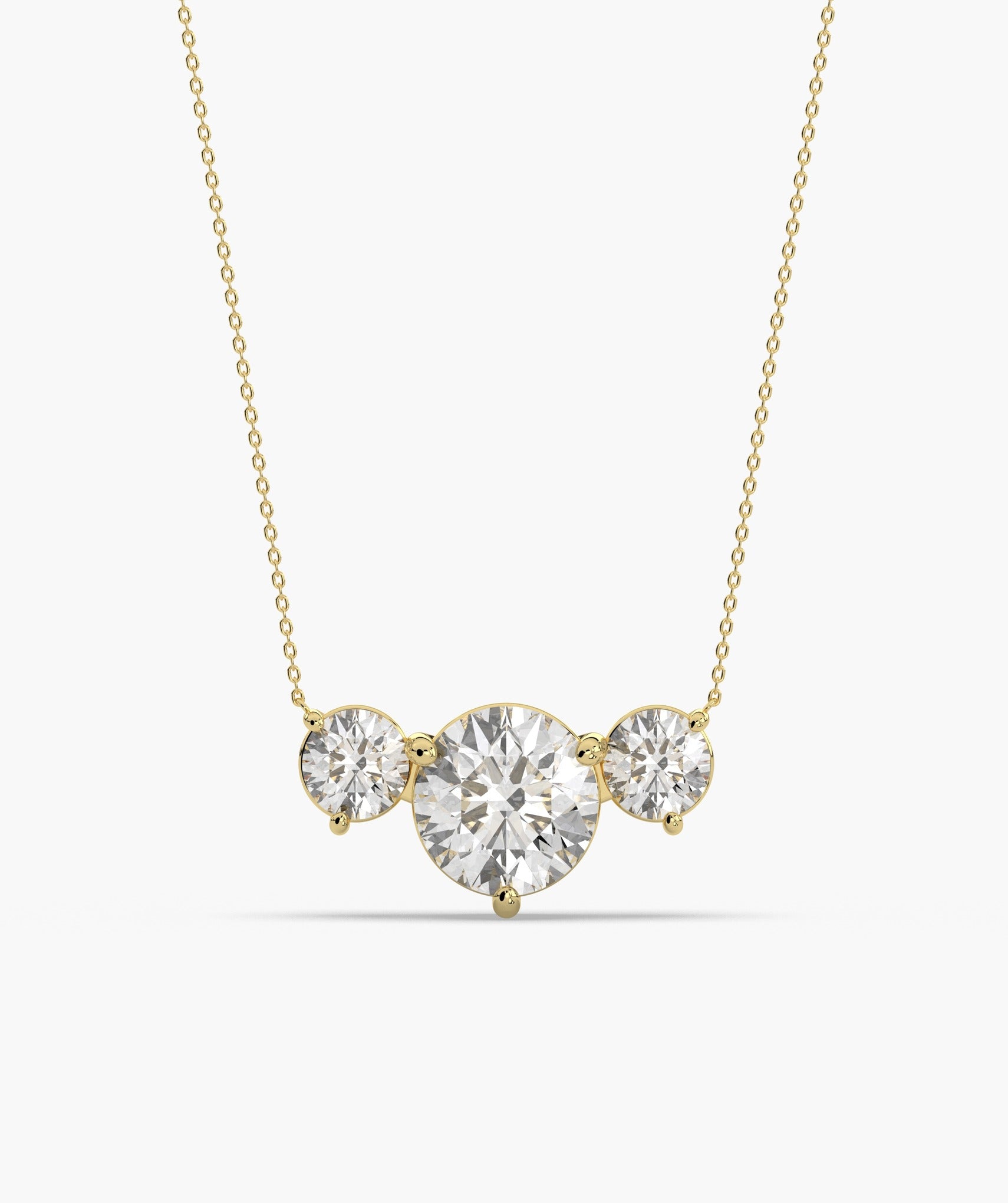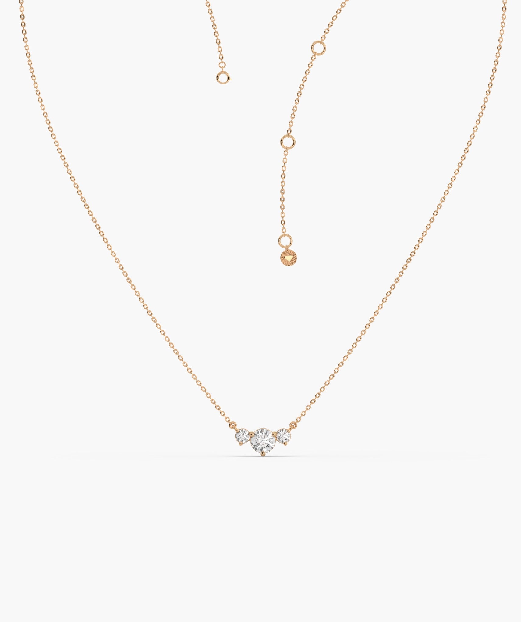 Refined 14K gold necklace with three prong-set diamonds, offering timeless elegance and a touch of sparkle for any occasion.