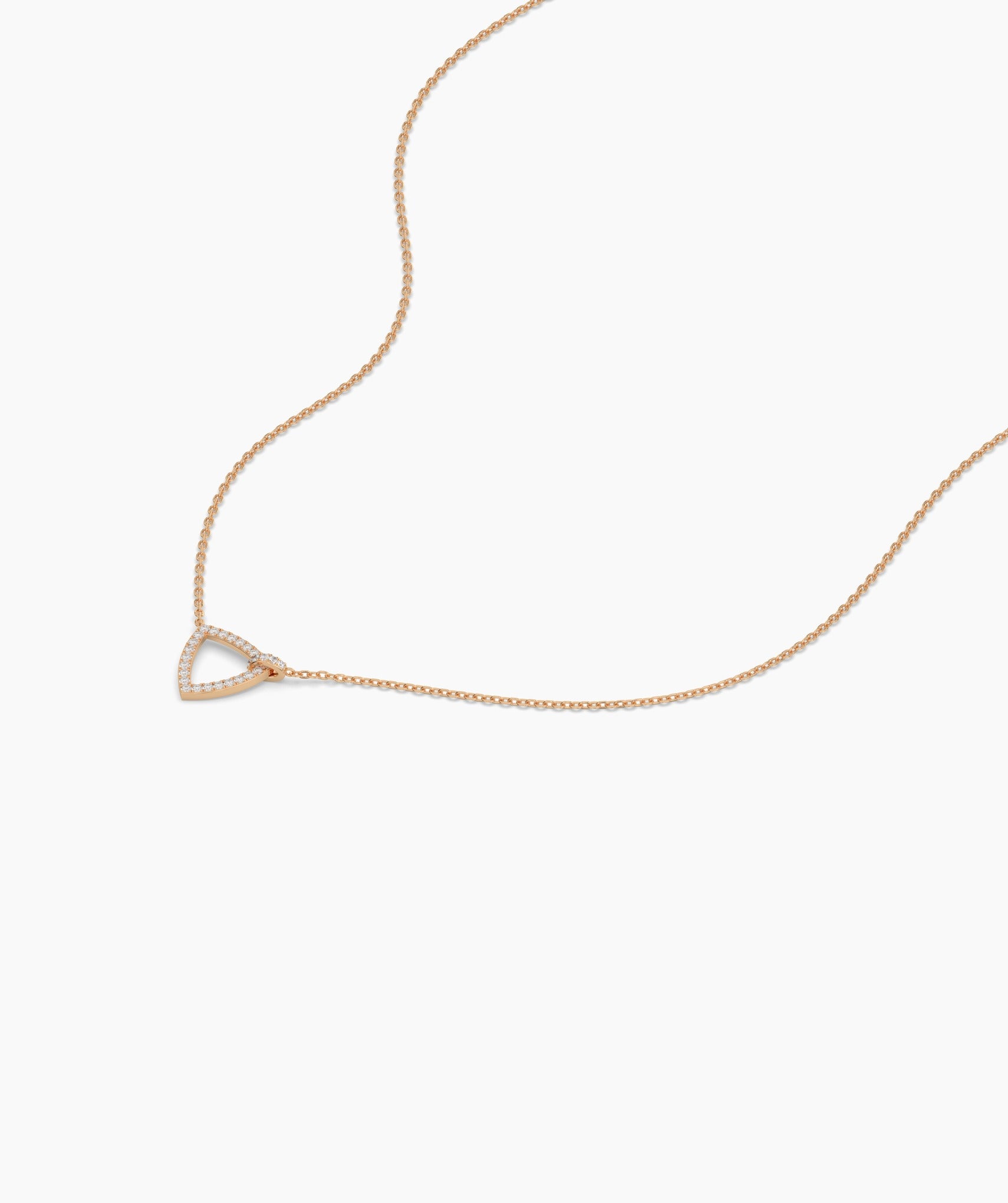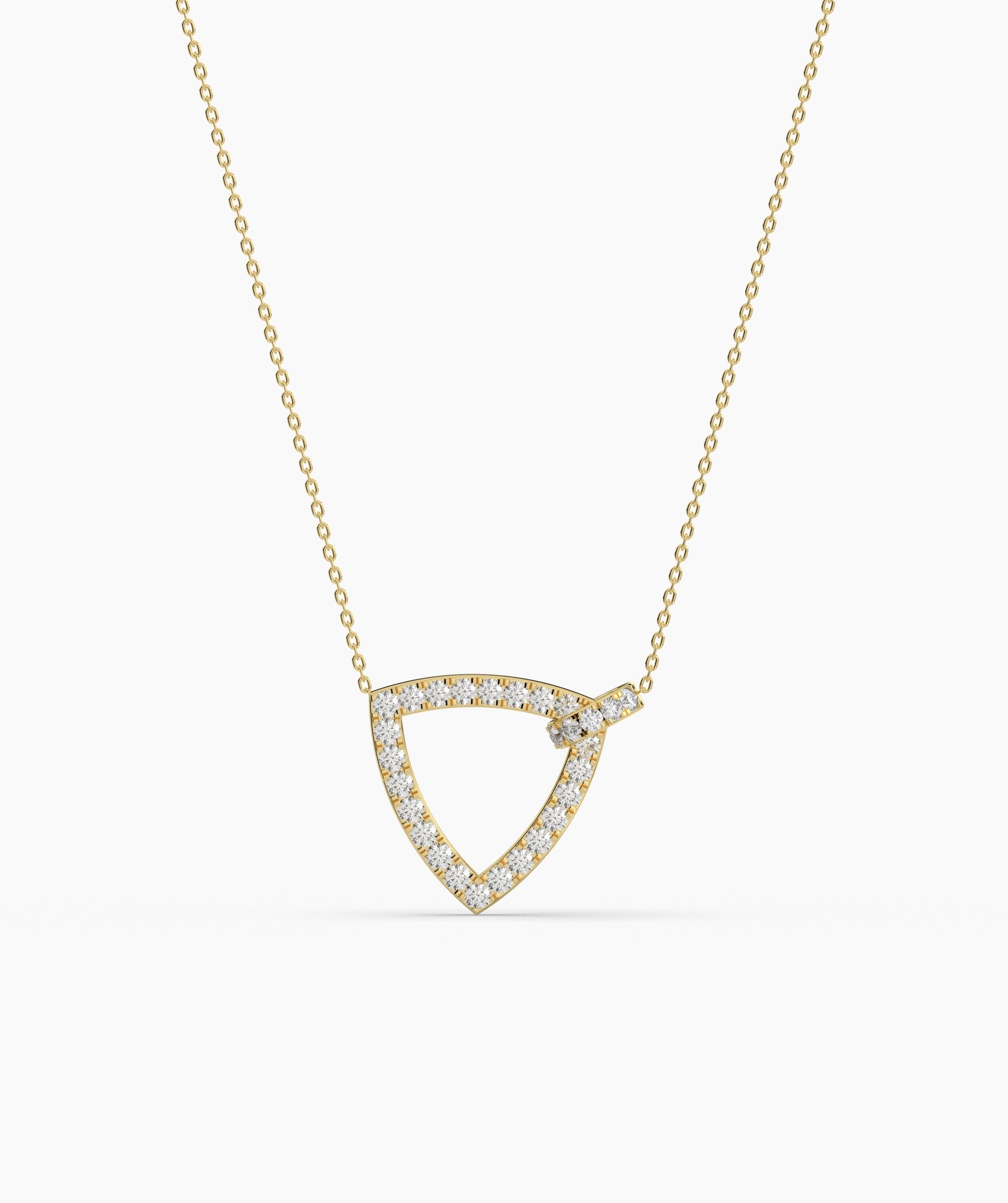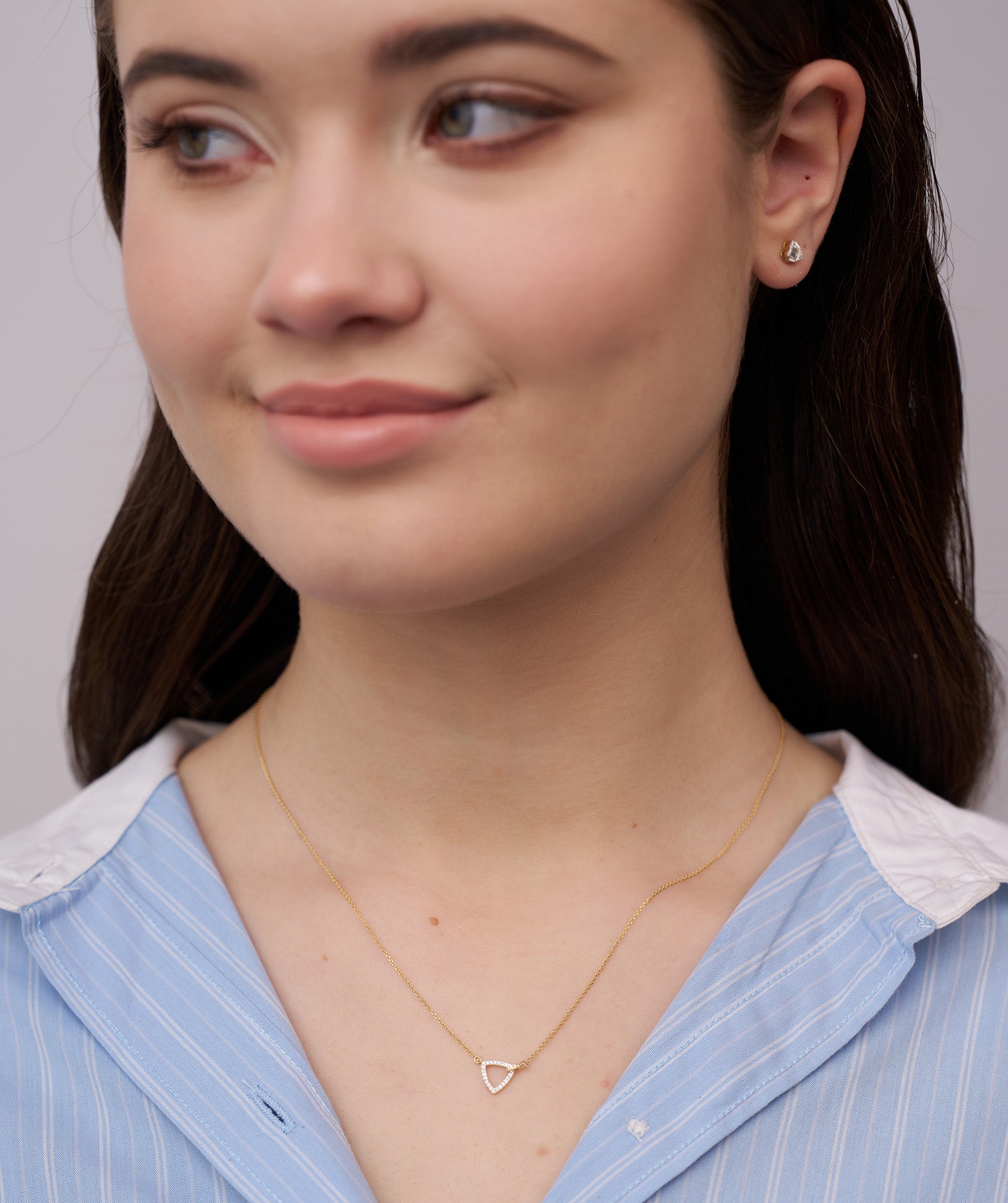 This stunning 14K gold necklace features a geometric diamond-studded triangle with a charming bow detail, perfect for everyday luxury.
