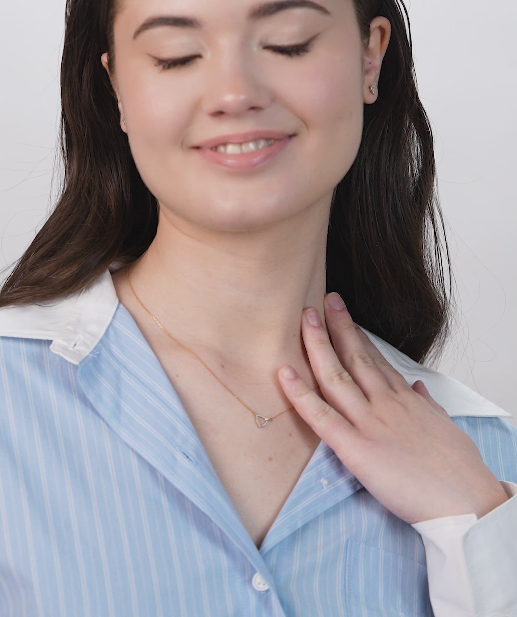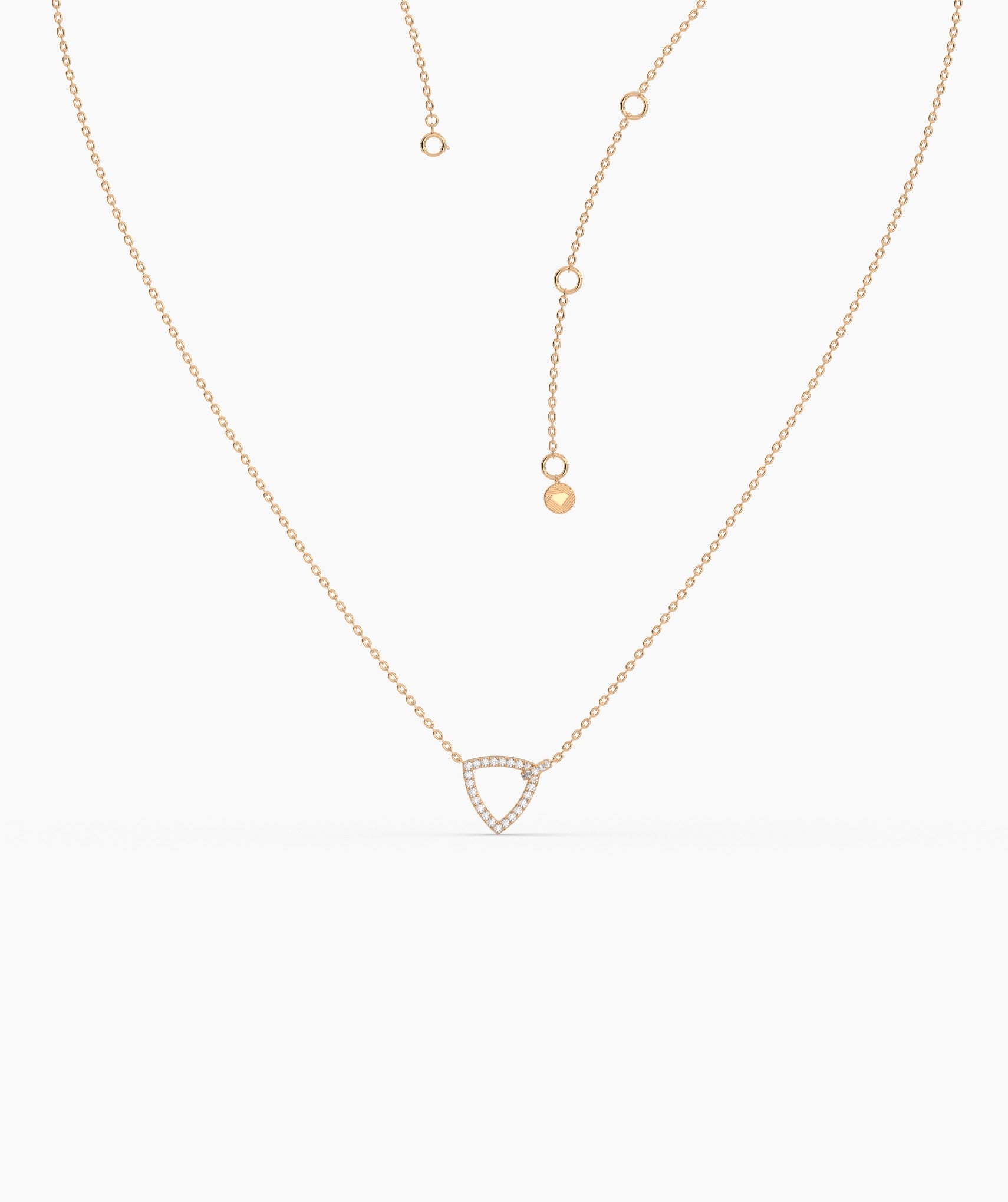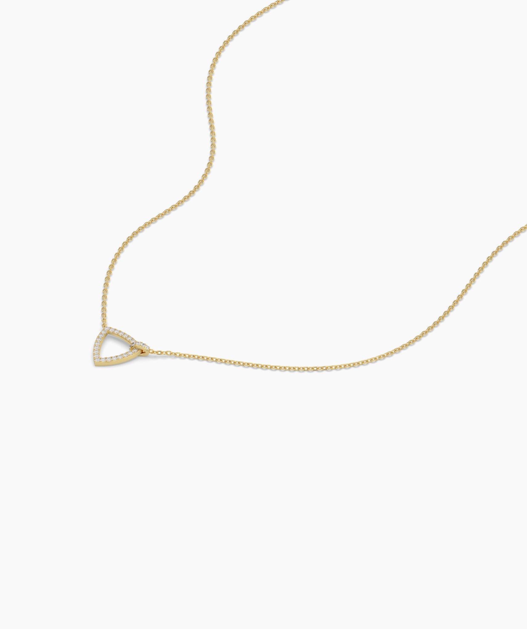 This stunning 14K gold necklace features a geometric diamond-studded triangle with a charming bow detail, perfect for everyday luxury.