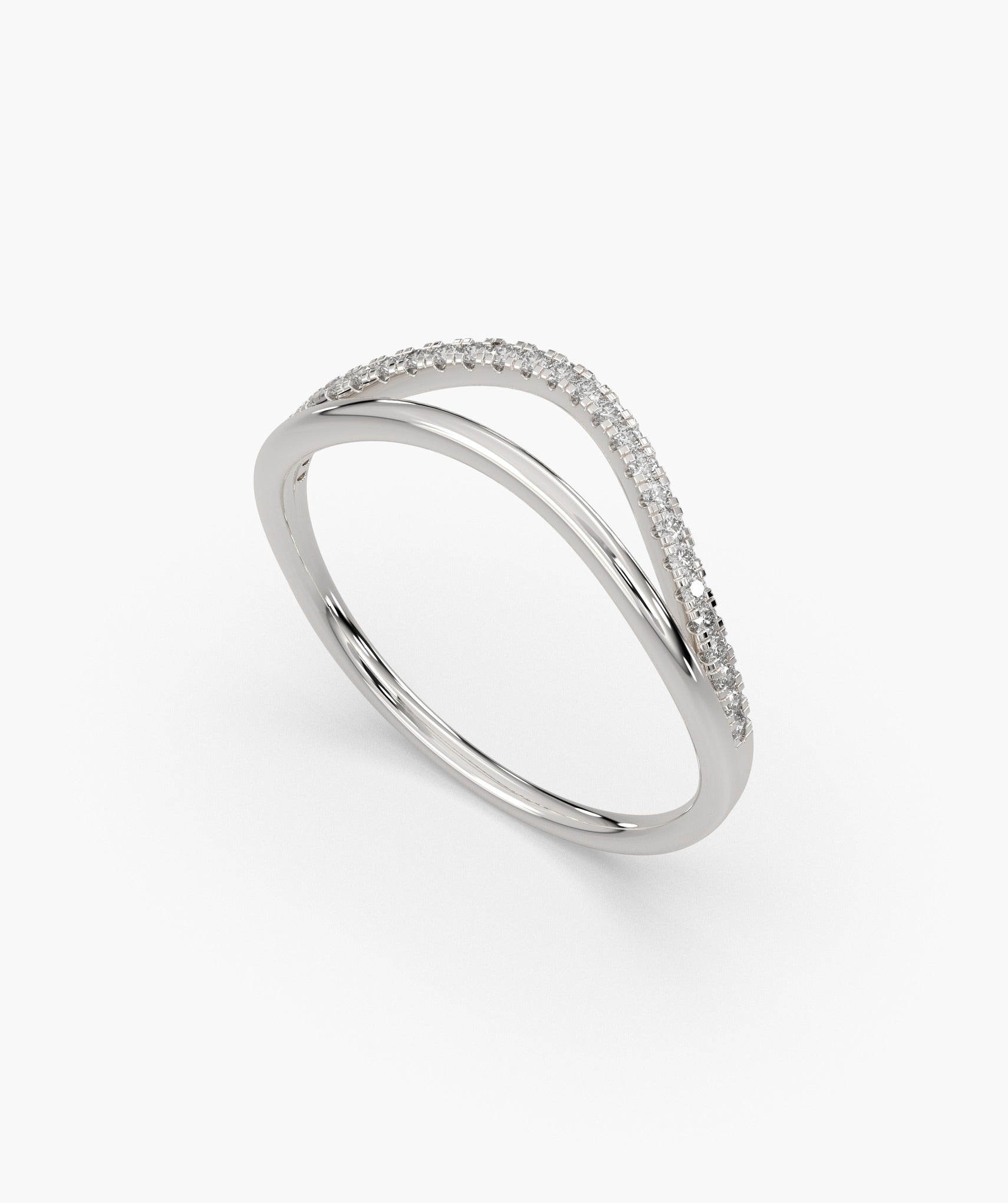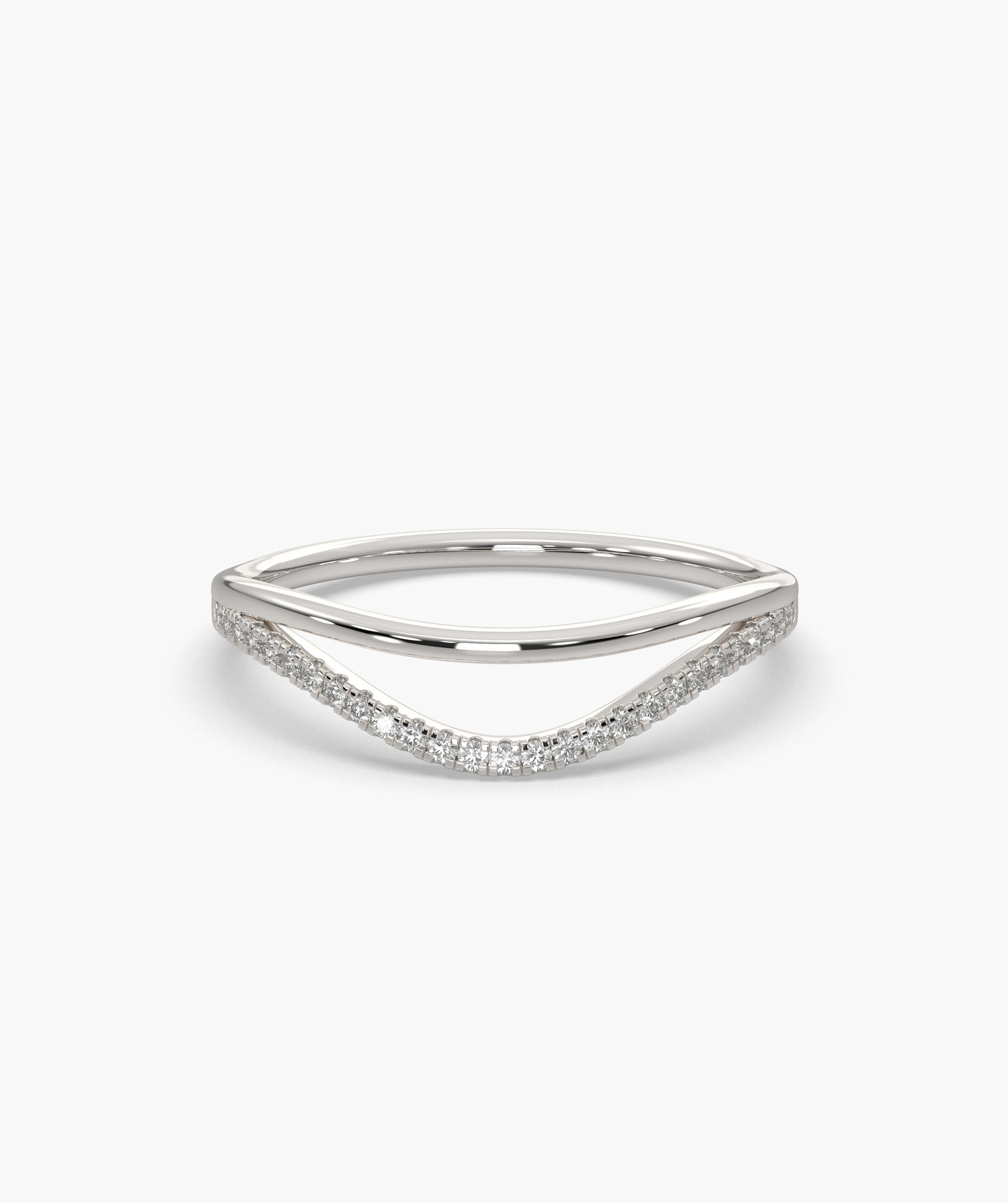A modern twist on timeless elegance—this curved gold band is adorned with pavé-set diamonds, capturing light from every angle.